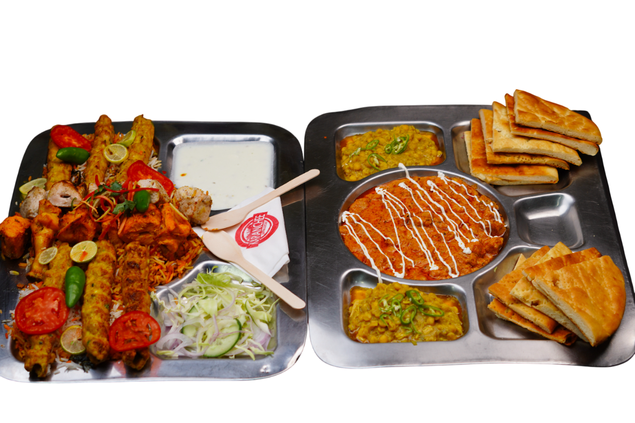 Birayani/ Pulao, Handi, 6 Malai Boti, 6 Seekh Kabbab, 6 Chatkara Boti  Shahi Daal, Mint Sauce, Salad , & 6 Naan.